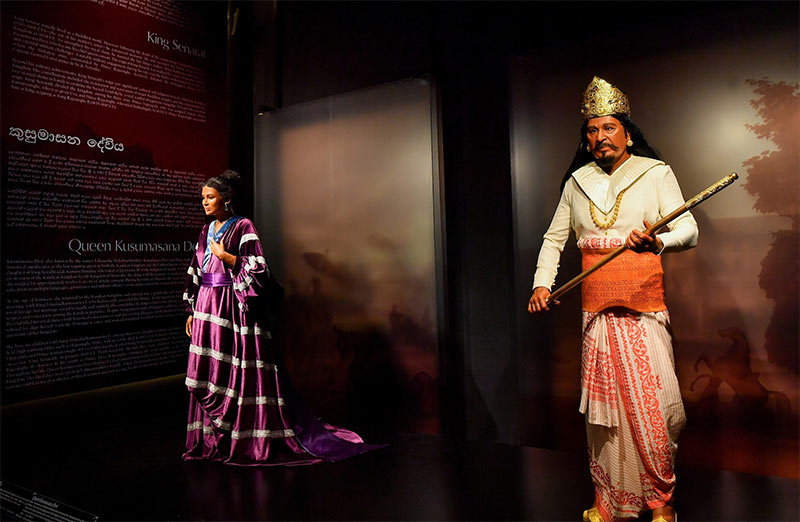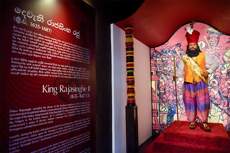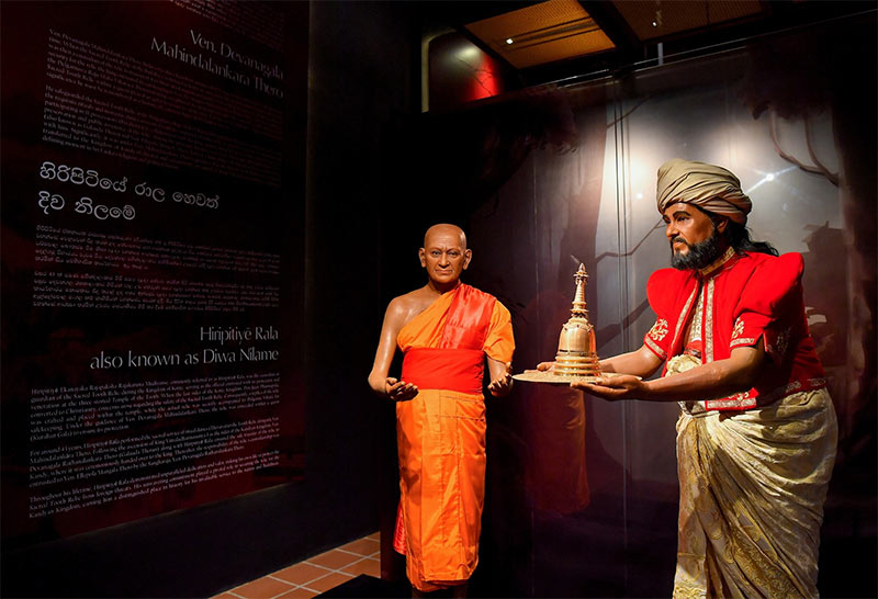 Furthermore, 35 lifelike wax figures of significant historical figures have been recreated at the museum. These include Ven. Weliwita Sri Saranankara Sangharaja Thera, Ven. Wariyapola Sri Sumangala Thera, King Wimaladharmasūriya I, Queen Kusumāsana Devi, Monarawila Keppetipola Disawe, Devendra Mulachari, Governor Robert Brownrigg, Ehelepola Maha Adikaram, Kumarihami, and their two children.